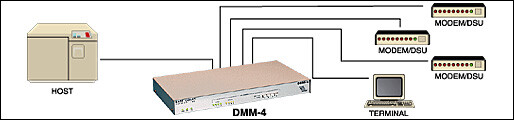 DMM-4를 사용하면 최대 4개의 RS-232 DCE 또는 DTE 장치가 모뎀/DSU 또는 컴퓨터 포트를 공유할 수 있습니다.