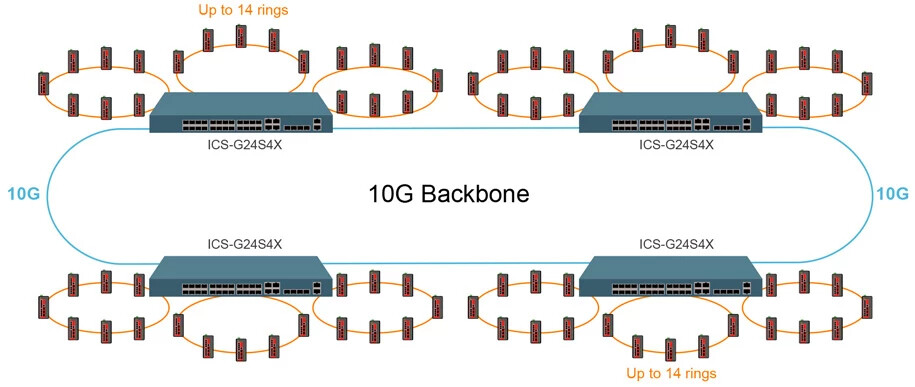또한, 높은 포트 밀도와 GbE 또는 10GbE 고속 업링크를 갖춘 ICS-G24S4X 및 ICS-G24S2X는 코어 레이어 또는 백본 애플리케이션을 위한 안정적이고 확장 가능한 솔루션입니다.