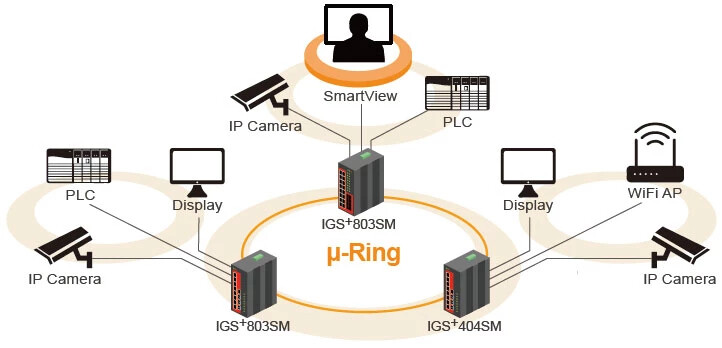 - 이중화 케이블링을 위한 μ-링, 250개 장치에서 복구 시간<10ms