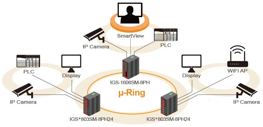 - 이중화 케이블 연결을 위한 μ-링, 250개 장치에서 복구 시간<10ms