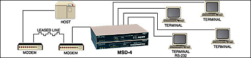Modem Sharing Devices는 RS-232 DTE 장치가 전용 회선 및 다이얼 회선 모뎀 또는 DSU를 공유할 수 있도록 설계되었습니다. 마스터 포트에 도착하는 데이터는 모든 하위 채널에 지속적으로 브로드캐스트됩니다. RTS 제어 신호를 발생시키는 연결된 터미널 장치에는 자동으로 MSD 제어권이 부여됩니다. 최대 128Kbps의 데이터 속도가 지원됩니다.