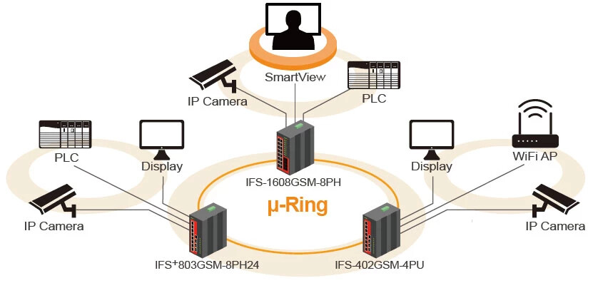 - 이중화 케이블 연결을 위한 μ-링, 250개 장치에서 복구 시간<10ms