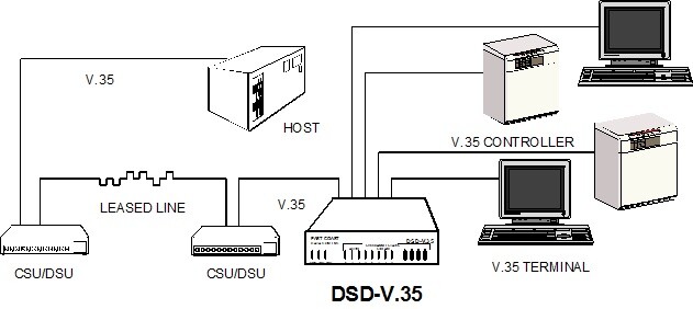 Digital Sharing Devices는 고속 V.35 DTE 장치가 전용 회선 및 다이얼 회선 모뎀 또는 DSU를 공유할 수 있도록 설계되었습니다. 마스터 포트에 도착하는 데이터는 모든 하위 채널에 지속적으로 브로드캐스트됩니다. RTS 제어 신호를 발생시키는 연결된 터미널 장치에는 자동으로 DSD 제어권이 부여됩니다. 최대 2.048Mbps의 데이터 속도가 지원됩니다.