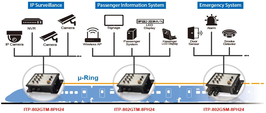 모든 ITP 시리즈 스위치는 M12 커넥터를 사용하여 방수, 견고한 연결을 보장하고 진동 및 충격에 대한 안정적인 연결을 보장합니다. 이 모델은 또한 전원 입력 전압, 서지, EFT, ESD, 진동 및 충격을 다루는 EN50155를 준수하므로 이러한 스위치는 차량, 철도 차량 또는 선박과 같은 산업 응용 분야에 적합합니다.