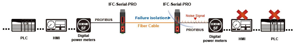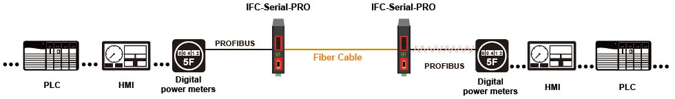 IFC-Serial-PRO는 RS-485 2-wire 반이중 연결을 위한 인터페이스 모드를 선택할 수 있고 PROFIBUS의 고속 데이터 전송률을 지원하는 광섬유를 통한 시리얼 변환기입니다.