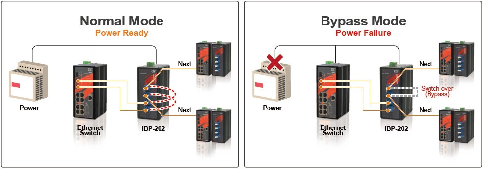 IBP-202는 광섬유 네트워크를 위한 광 경로 일반 모드와 바이패스 모드의 기능을 지원합니다. 전원 시스템 장애가 발생할 때 업로드 및 다운로드 광섬유 경로를 모두 전환하고 전원이 다시 들어오면 경로를 복원하는 간단한 메커니즘을 제공합니다. 전원 시스템으로 인한 광 네트워크 Node-Down의 위험을 줄이는 간단한 방법을 제공합니다.