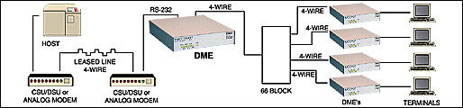 DME는 전용 4개 와이어를 통해 최대 64kbps의 데이터 속도로 양방향으로 데이터를 전송하고 수신합니다. 이 장치는 동기식 Point-to-Point 또는 Multi-point 작동을 위해 설계되었으며 DCE/DTE 선택 가능 RS-232 인터페이스와 통합 8비트 버퍼가 있습니다.