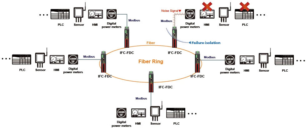 Figure 4 : Fiber Ring Redundancy topology & application