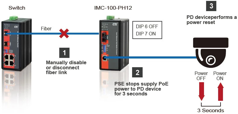 IMC-100-PH12는 전기 RJ-45 포트를 통해 PoE+/PoE 전력을 주입하는 고정 100Base-FX 비관리형 이더넷 미디어 컨버터인 10/100Base-TX입니다.