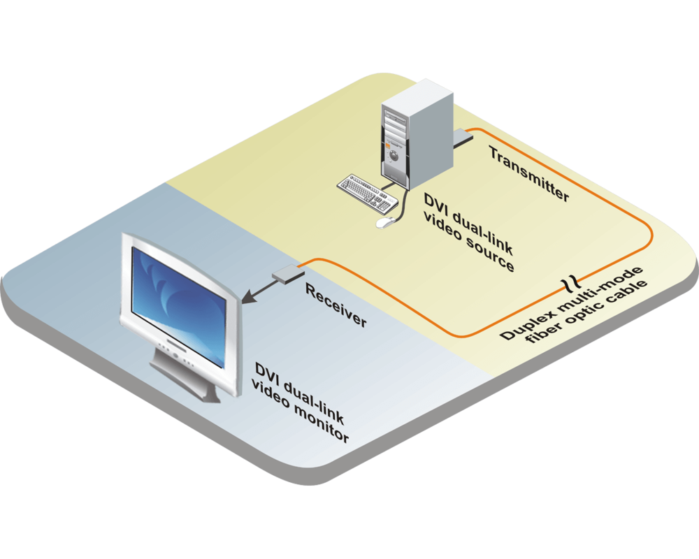 Dual-link DVI-D Fiber Extender, complete kit. transmitter, receiver, and power adapter