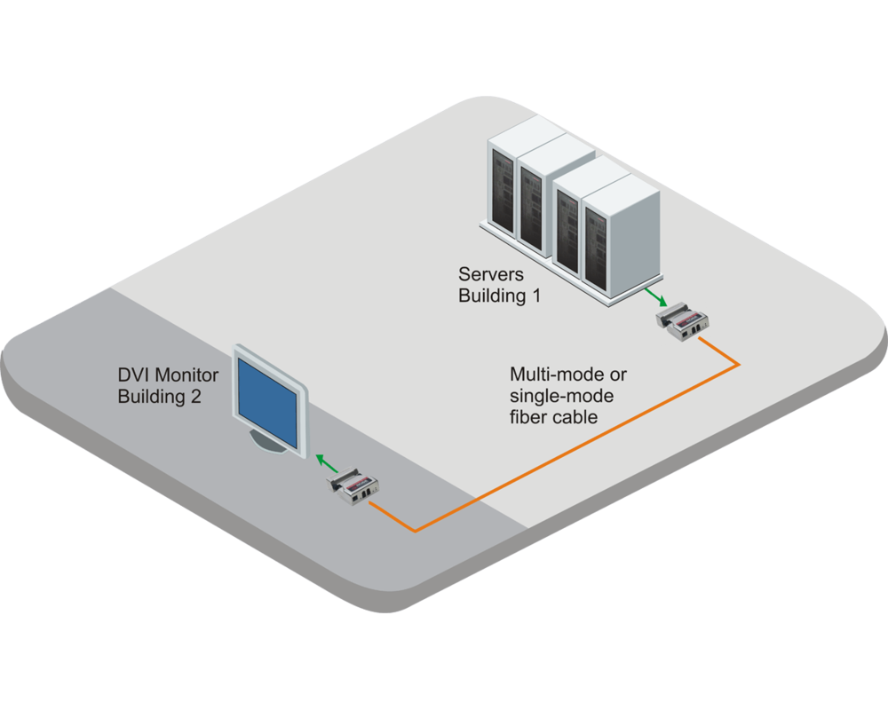 Single-link DVI-D Fiber Extender to 1920*1200. Accepts single-mode (1,500m) and multi-mode (500m).