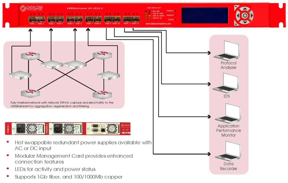 | VS-1012-F | VERSAstream™ 12 Port Data Access Switch SFPs Dual Power Supply |