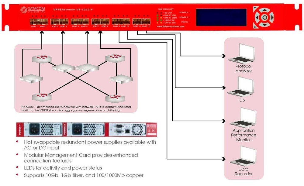 | VS-1212-F | VERSAstream™ 12 port 10G/1G Network Monitoring Switch |