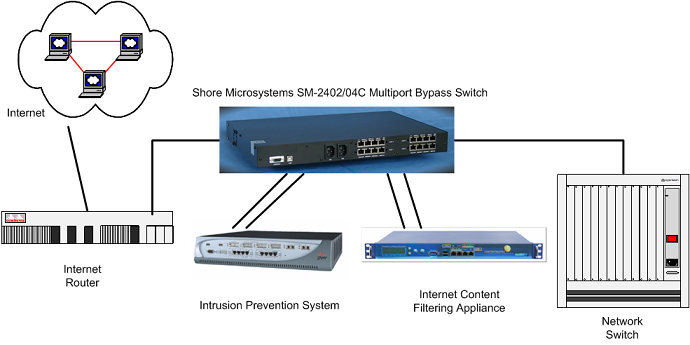 SM-2402/04C 멀티포트 프로그래밍 가능 바이패스 스위치는 오작동하는 네트워크 어플라이언스를 자동으로 바이패스하는 기능을 제공합니다. 이 장치는 독립형 모드에서 작동하거나 직렬통신 링크를 통해 올바르게 작동하는 네트워크 장치와 주기적으로 상호 작용할 수 있는 지능형 감시 장치로 작동합니다.