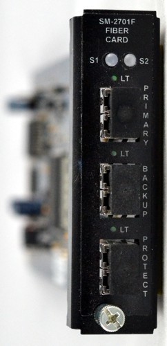 SM-2701F Fiber 포트 카드는 기본, 백업 및 보호된 1000BaseSX 이더넷 포트에 연결하기 위한 3개의 LC스타일 이중 커넥터를 제공합니다. 싱글모드(LX 또는 ZX) 버전은 특별 주문으로 제공되며, 선택적 광학 바이패스는 기본 포트와 보호 포트 사이에서 사용할 수 있습니다.