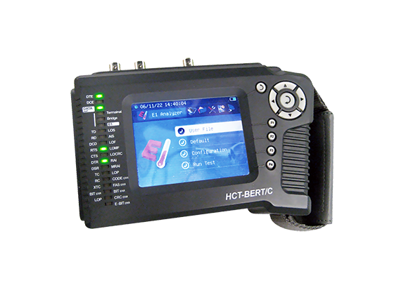 HCT-BERT/C 테스터는 데이터 통신((V.35, RS530, X.21, RS232) 및 E1(2.048Mbps) 라인)의 분석 및 유지 보수를 하는 현장 사용에 맞게 설계된 소형 컬러 LCD, 그래픽 사용자 인터페이스, 한손 E1비트 오류율 테스터입니다.