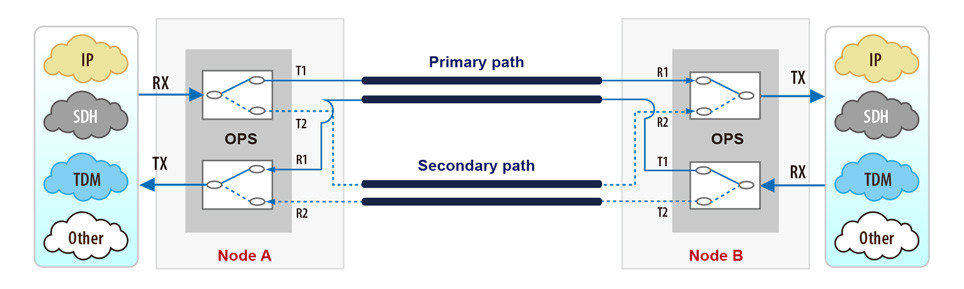 이 솔루션에는 작동 및 보호 경로 파이버 모두에 대한 모니터링 기능이 포함됩니다. 활성 경로에서 파이버가 절단된 경우 트래픽이 50ms 미만으로 보호 경로로 전환됩니다. SNMP 관리를 통해 두카드가 모두 FRM220 랙에 배치되면 SNMP 관리를 통해 모니터링할 수 있습니다.