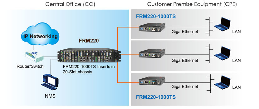 FRM220-1000TS는 대기시간이 매우 짧은 투명한 Gigabit Ethernet 1000Base-T to 1000Base-SX/LX SFP 변환기입니다. 이들은 관리(NMC와 함께 FRM220에 설치된 경우) 또는 비관리형 독립형 매체 변환기로서 LC 커넥터가 있는 광범위한 산업 표준 SFP 모듈중에서 선택할 수 있는 옵션을 제공합니다. 멀티모드 및 싱글모드 유형의 SFP와 BiDi는 단일 광섬유 케이블만 사용하여 양방향 전송이 가능합니다.
