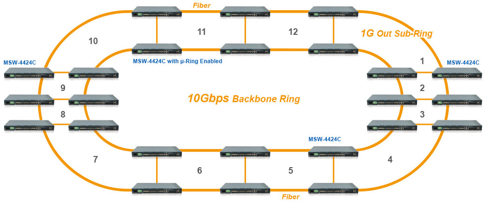 MSW-4424C는 운영자 또는 서비스 제공업체가 메트로 이더넷 네트워크를 구축할 수있는 최고의 유연성과 확장성을 제공합니다. MSW-4424C를 배포함으로써 사업자 또는 서비스 제공업체는 서비스 애플리케이션에서 Gigabit 또는 10G 속도의 업링크 연결뿐만 아니라 100Mbps 또는 1000Mbps의 대역폭을 유연하게 프로비저닝할 수 있습니다.