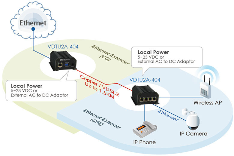 VDTU2A-404 VDSL2 LAN 익스텐더는 초고속을 제공하여 전화선이 이전보다 최고의 성능을 제공합니다. 플러그앤플레이와 같은 최소 설치시간과 비디오 스트리밍 및 데이터가 간섭없이 동일한 전화 쌍을 공유할 수 있도록 하여 최소 비용이라는 이점이 있습니다. VDTU2A-404 VDSL2 LAN Extender는 고속 인터넷 액세스, 주문형 비디오 서비스 및 음성 서비스를 제공하기 위해 고속 IP 기반 네트워크를 신속하게 구축하는데 필요한 모든 것을 제공합니다. 그 결과 작고 경제적인 소형 폼 팩터는 소기업 소유자에게 매력적인 Long Reach Ethernet 솔루션인 Systems Integrator를 제공합니다.