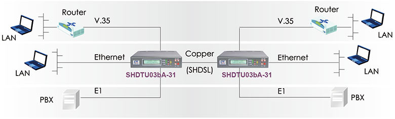 SHDTU03b 시리즈 SHDSL NTU는 통신사업자와 SME사용자를 위해 설계된 통신제품입니다. 이 일련의 G.SHDSL. bis NTU는 다양한 연결요구를 충족시키기 위해 데이터 인터페이스에 대한 다양한 선택을 제공합니다. 독립형 G.SHDSL.bis 모뎀에는 E1, V35 및 이더넷 인터페이스가 있어 다른 DTE 유형에 연결할 수 있습니다. 다중 인터페이스가 장착된 독립형 SHDTU03b 시리즈 NTU는 SHDSL 링크를 통한 사용자 트래픽을 결합합니다.