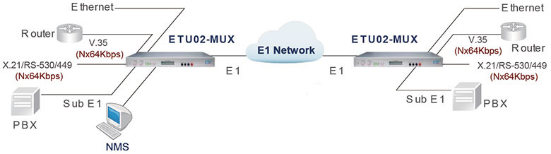 ETU02-MUX는 Fractional E1 네트워크 서비스를 위한 1U 19(23)" 4슬롯 랙마운트 가능 멀티플렉싱 솔루션입니다.