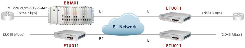 ETU011은 데이터 채널을 사용자가 선택한 타임 슬롯의 E1 링크에 패킹합니다. 사용하지않는 타임 슬롯은 IDLE 코드를 삽입할 수 있습니다(프레임 모드). ETU011 전면 패널의 스포츠 상태 LED는 CSU 및 DSU 상태를 모니터링하고 BERT가 통합된 로컬 및 원격 루프백을 시작하기 위한 푸시 버튼 스위치입니다.