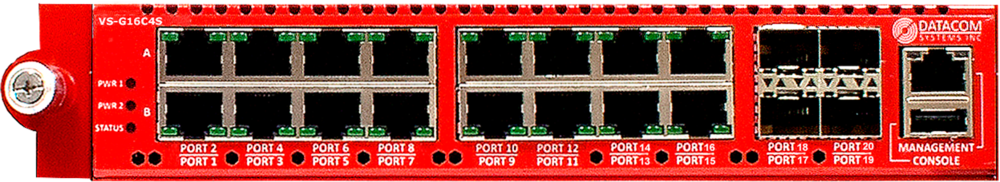 | VS-G16C4S | 20 Port network packet broker with sixteen (16) copper 10/100/1000 ports and four (4) SFP+ ports |
