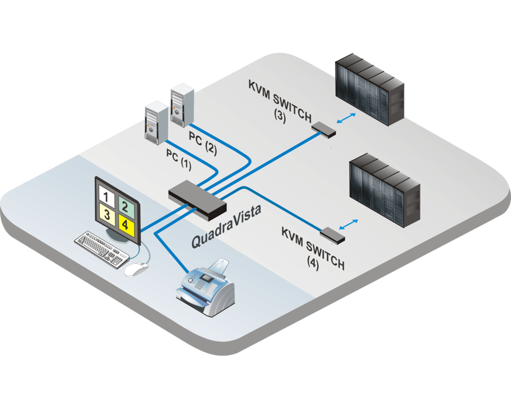 QuadraVista II, Quad Video KVM Switch, 1 KVM to 4 CPUs